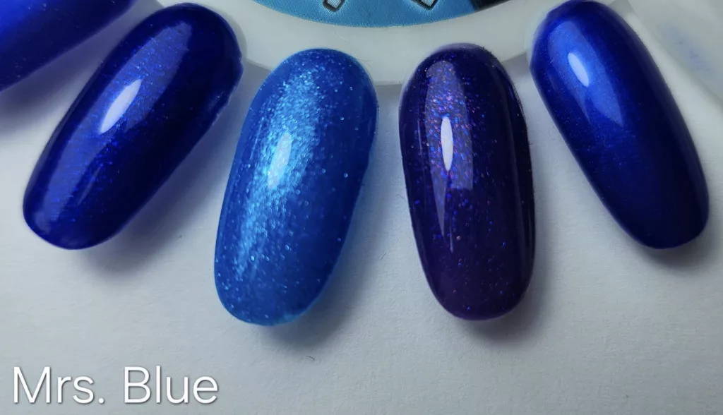 Kolekcia Mrs Blue je poklad, ktorý by nemal chýbať žiadnemu milovníkovi zdobenia nechtov. Krásne tmavomodré odtiene a jemné trblietky zaručujú, že si ju obľúbite na dlhé roky.